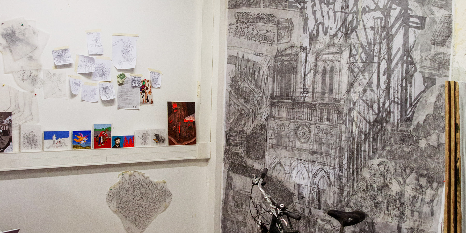 L’atelier partagé fait partie de l’écosystème du Onzième Lieu : les artistes intègrent une communauté de résidents – artistes, entrepreneurs et travailleurs indépendants – qui occupent le coworking à l’étage et le café studieux voisin. Un service de restauration est disponible sur place, au Petit Comptoir au rez de chaussée.