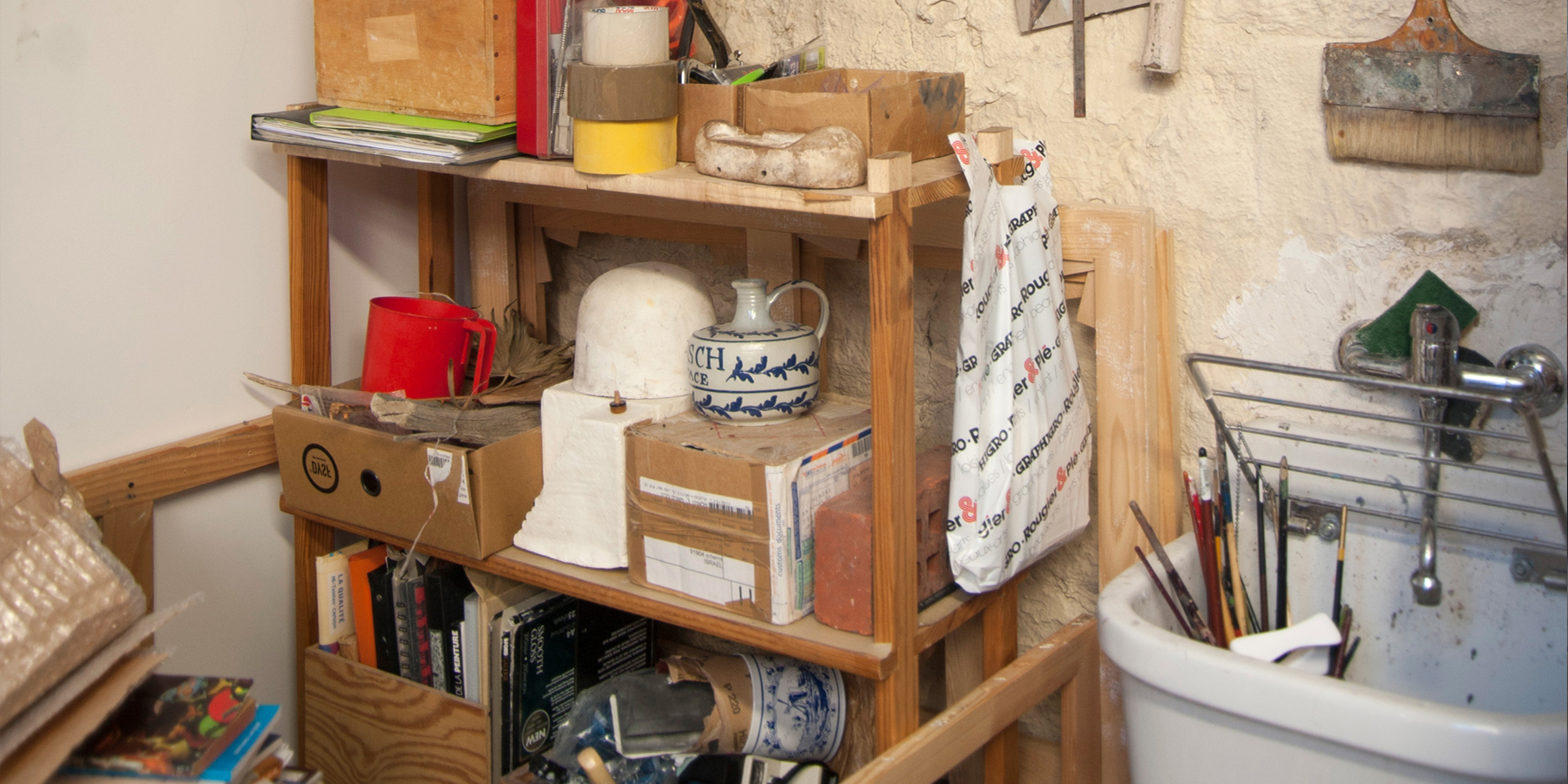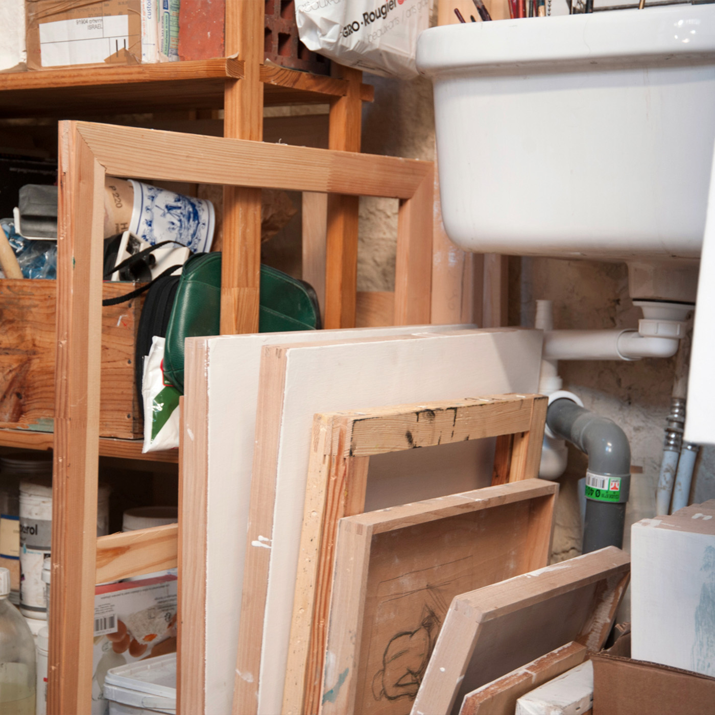 Stockage de toiles et cadre dans l'atelier