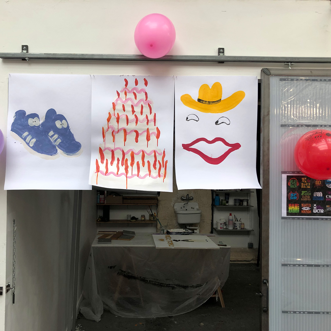 Exposition sauvage sur la porte de l'atelier