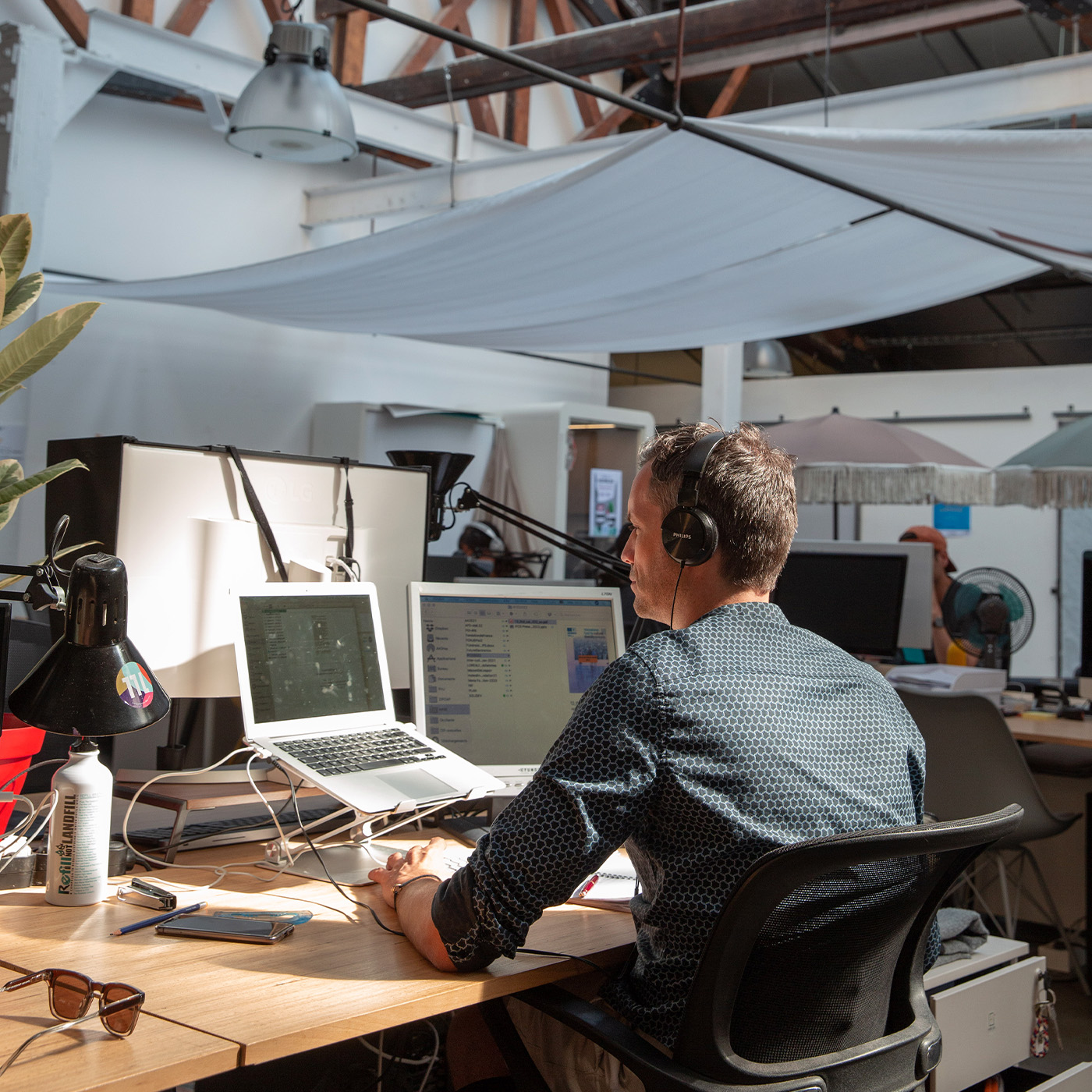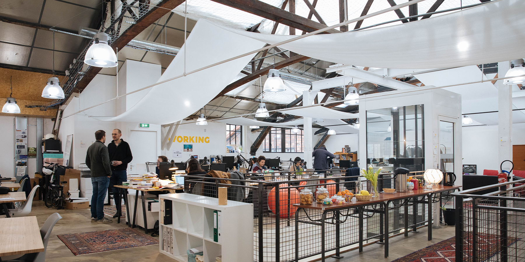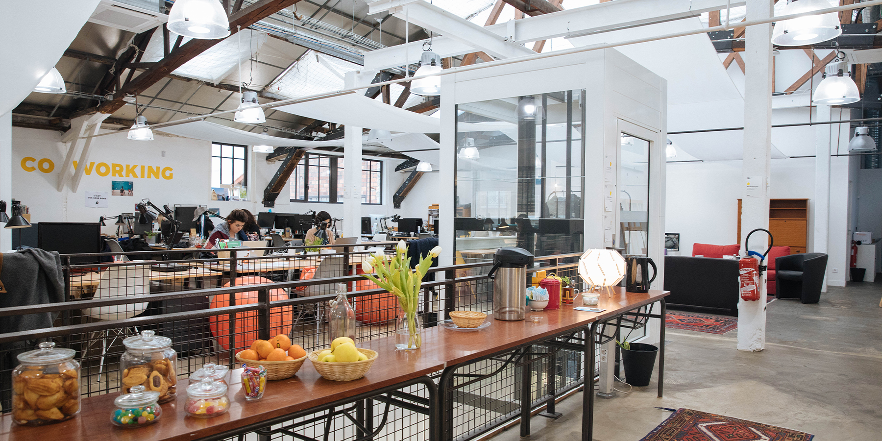 À l’étage, du Onzième Lieu, un coworking ensoleillé : des bureaux spacieux, confortables et équipés, à louer au mois. On y travaille de jour comme de nuit grâce à l’accès 24/24, 7/7.